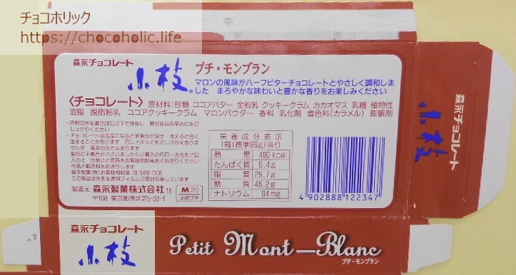 今回のパッケージは、1997年に購入した森永製菓の『小枝プチ・モンブラン』です。